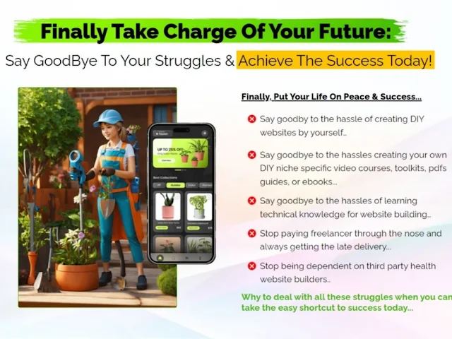 This innovative platform empowers you to launch your own DIY site and store creation agency, allowing you to design stunning DIY websites packed with ready-made video courses, products, toolkits, guides, eBooks, and more.